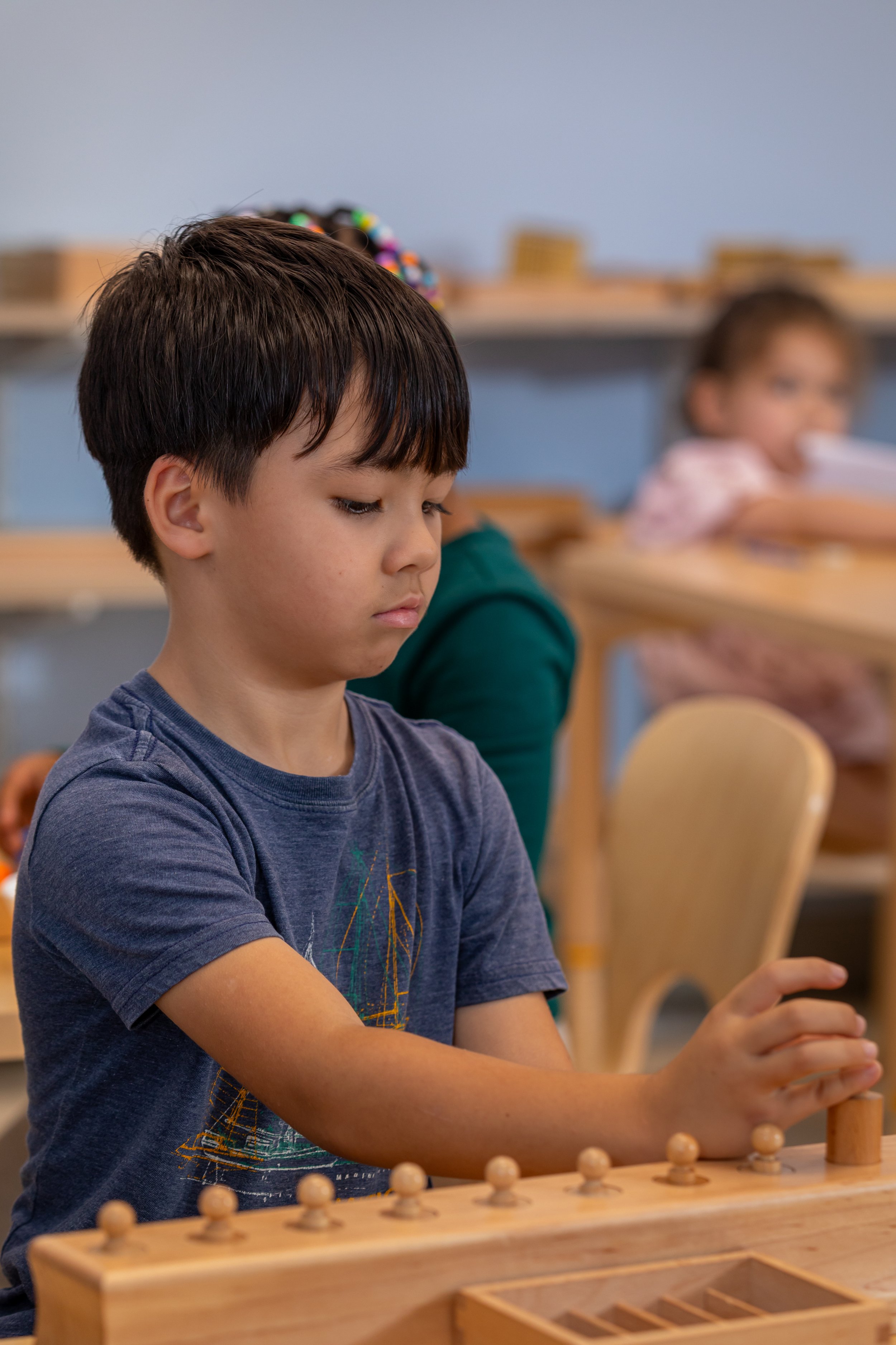 Everyone begins learning through their senses. Students will begin to understand their environment with the help of sensorial activities shaped to help with exercise, of organizing, combining, learning about their sensory input while developing fine motor skills and focus.